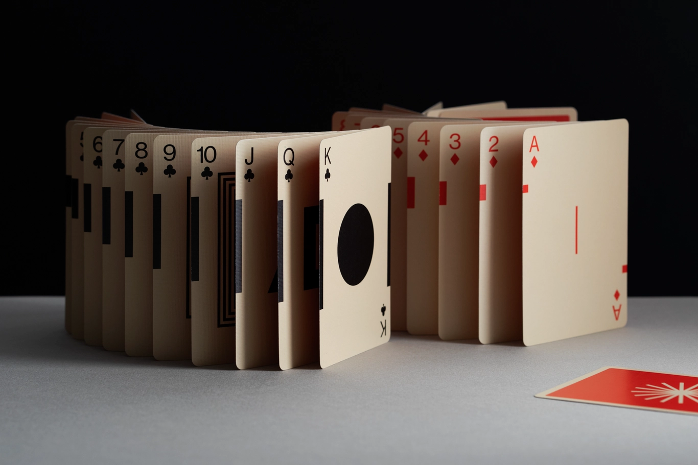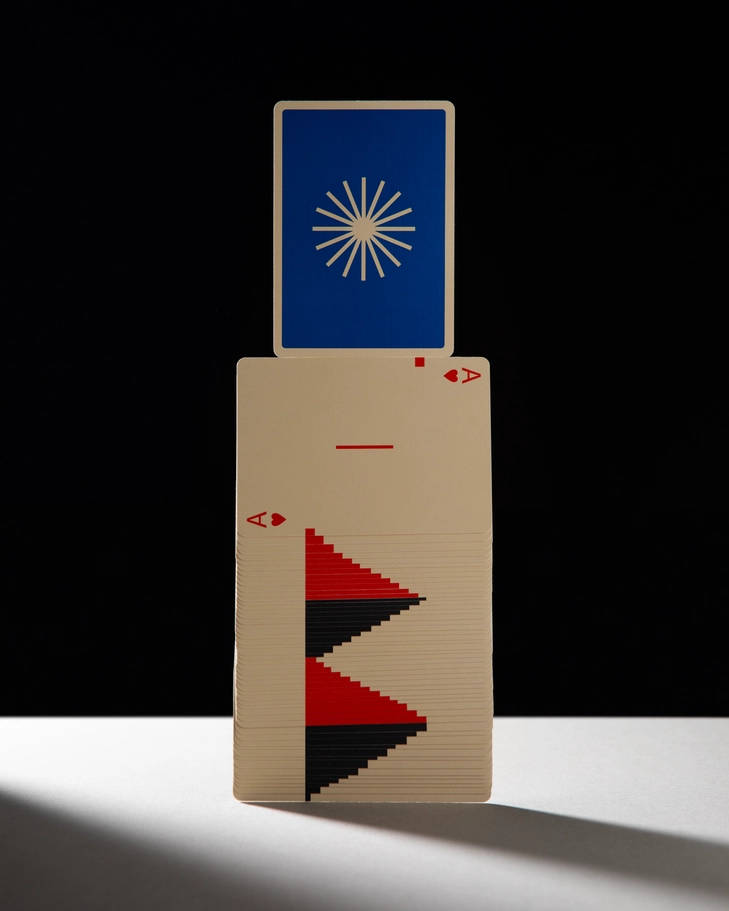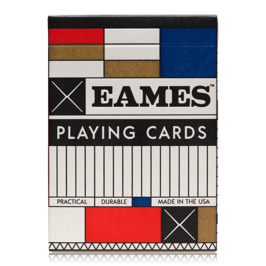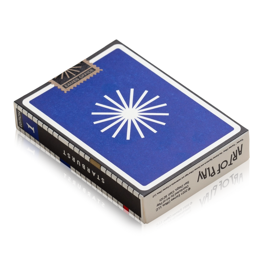 Eames playing cards. Designed by Art of Play in close collaboration with the eames office. A tribute to the timeless sensibilities of charles & ray eames. Our first edition of eames playing cards showcases the eames office starburst logo on the backs. This iconic emblem was a recurring motif in the work of both charles and ray. Here it signifies their boundless creative energy—an explosion of light reaching for the outer limits of design’s true purpose. The unique numbering system on the faces of the cards enables acts of cardistry to function as subtle homages to the eameses’ classic film “powers of ten.” the court cards honor the natural majesty they found in elemental geometric shapes.