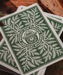 Official Smokey Bear Playing Cards. Produced in association with the USDA Forest Service, the cards feature Smokey and twelve of his closest woodland friends, along with fire-prevention tips illustrated throughout the deck by Sam Larson.