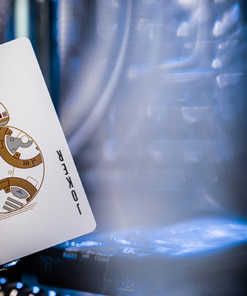 Both decks have the same set of 12 court cards, with iconic light side and dark side characters. Each card features detailed depictions of these iconic characters. On the light side: Rey, Leia Organa, Han Solo, LukeSkywalker, and more.