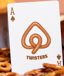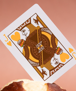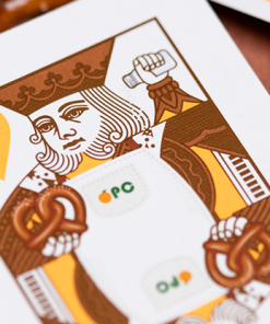 It is time to introduce you to Twisters! The newest line in the OPC brand! This is a deck I have wanted to make for so long and it’s finally here! This deck sports metallic brown ink with some salt and a yellow border! I love that we were able to take a classy back color like brown and still make it fun and flashy! As always we have our slightly customized courts and our clear packaging!